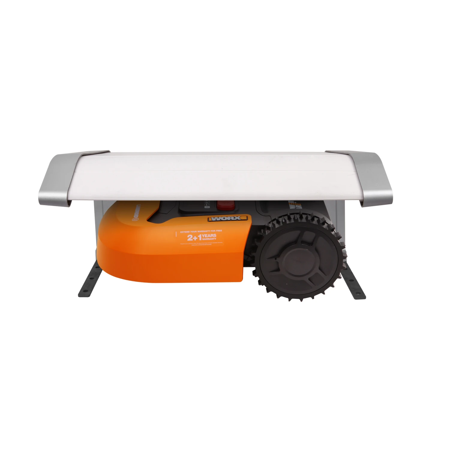 Die Worx-Garage aus beständigem Material schützt deinen Landroid-Mähroboter und die Ladestation vor Sonnenstrahlung, Wind und Regen. Der Aufbau erfolgt schnell und einfach und die kompakte Bauweise sorgt für einen sicheren und stabilen Halt. Die moderne Konstruktion bietet ausreichend viel Platz, eine gute Luftzirkulation und auch das Bedienfeld bleibt jederzeit zugänglich. Mit ihrem modernen Design und den Abmessungen von 69 x 55 x 39 cm passt sich die Garage perfekt deinem Garten an.